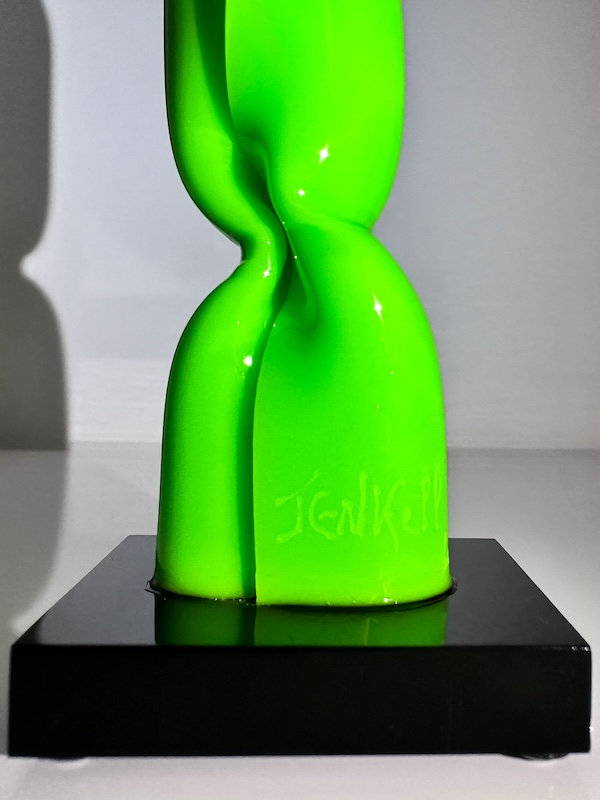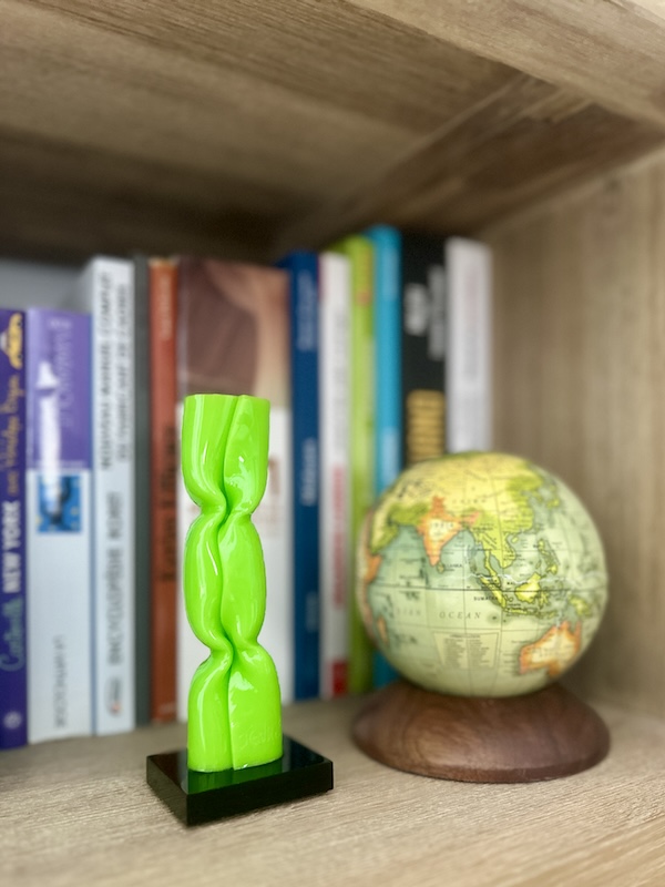 Wrapping Bonbon Vert 12 cm est l’une des sculptures les plus petites et minutieuses réalisées par l’artiste à la renommée internationale, Laurence Jenkell. La torsion présente ici est fascinante, la dimension travaillée n’arrête pas le talent de l’artiste. Cette sculpture captive ses contemplateurs. Elle trouvera aisément sa place sur un bureau, dans un salon, une chambre, sur une console élégante ou une table basse contemporaine.